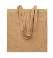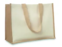 Laminált juta bevásárlótáska. Vászon elülső rész és hosszú, pamut fül.