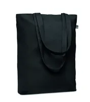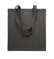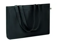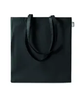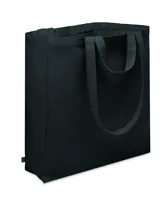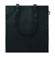 Nagy bevásárlótáska 600D RPET anyagból, hosszú fülekkel, az alján toldással.