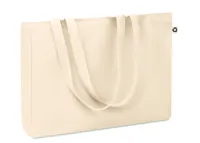 Újrahasznosított vászon bevásárlótáska vagy strandtáska hosszú füllel, oldalsó toldással. 50% pamut ...