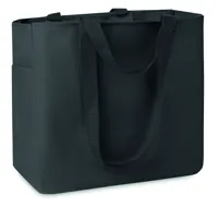 Bevásárlótáska 600D poliészter anyagból. Oldalsó- és belső cipzározható zsebbel. Rövid- és hosszú fü...