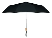 21 colos, 3 szakaszos összecsukható esernyő 190T RPET nyersselyem anyagból, fekete festett fém vázza...