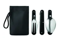 Kemping evőeszköz készlet, rozsdamentes acélból, alumínium nyéllel. Multifunkciós kanál, villa és ké...