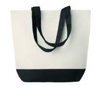 Bevásárló- vagy strandtáska 280 g vastag vászon anyagból, belső zsebbel. Színes aljjal és fülekkel.