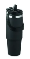 Duplafalú, újrahasznosított rozsdamentes acél pohár, beépített PE- szívószálas fedéllel. Űrtartalom ...