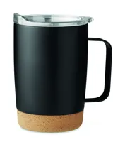 Rozsdamentes acél duplafalú úti bögre fekete PP fedéllel. Űrtartalom: 400 ml.