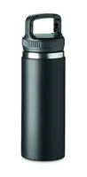Duplafalú rozsdamentes acél termoszpalack, kampós akasztóval a fedélen. Űrtartalom: 500 ml.