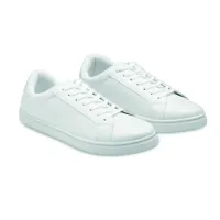 Könnyű PU tornacipő gumi talppal és poliészter fűzővel. Méret: 42. Fehér cipősdobozban.