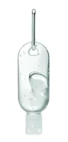 Kéztisztító gél flip top (ráütős) kupakos, újratölthető PET flakonban, karabinerrel. Űrtartalom 30 m...