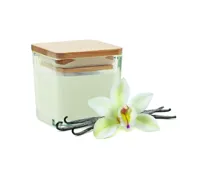 Illatosított növényi alapú viaszgyertya szögletes üvegtartóban, bambuszfedéllel. 50 g. Égési idő: 8 ...