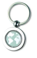 Fém kulcstartó földgömb dekorációval, fekete karton ajándékdobozban.