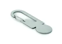Cinkötvözetből készült kulcstartó, 1 EUR méretű bevásárlókocsi érmével és üvegnyitóval.