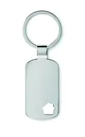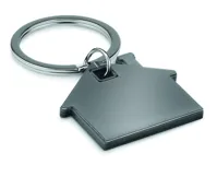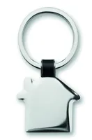 Ház alakú fém kulcstartó újrahasznosított PU bőr betéttel.