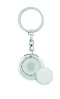 Bevásárlókocsi-érmés kulcstartó újrahasznosított alumíniumból.
