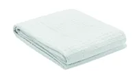 300 g/m² könnyű pamut waffle (jellegzetes négyzetrácsos szövésű) takaró. Fehér kartondobozban szállí...