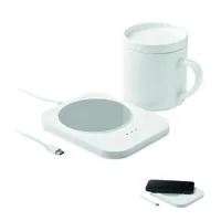 2 az 1-ben, 15W vezeték nélküli töltő és bögremelegítő eszköz ABS-ből, fedeles kerámia bögrével. Űrt...