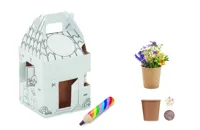 Csináld-magad madárház készítő szett nyárfából. A dekoráláshoz tartalmaz 1 ecsetet és 6 vízfestéket....