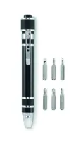 Golyóstoll alakú, újrahasznosított alumínium multifunkciós szerszám zseblámpával. 3 lapos és 3 csill...