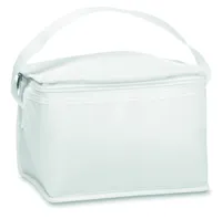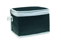 210D poliészter hűtőtáska 6 db üdítősdobozhoz. Nemszőtt fehér szegélyekkel. 80 g vastag anyag. Szige...