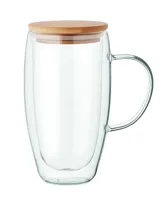 Duplafalú boroszilikát üveg bögre bambusz fedéllel. Űrtartalom: 450 ml.