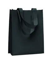 Kis ajándéktasak RPET nemszőttes anyagból, rövid fülekkel, toldással. 80 g/m².
