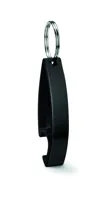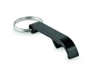 Újrahasznosított alumíniumból készült fényes kulcstartó üvegnyitóval.