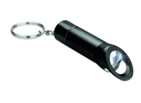 Fém kulcstartó elemlámpa LED fénnyel és üvegnyitóval. A működéshez szükséges 3 db LR44 gombelemmel s...