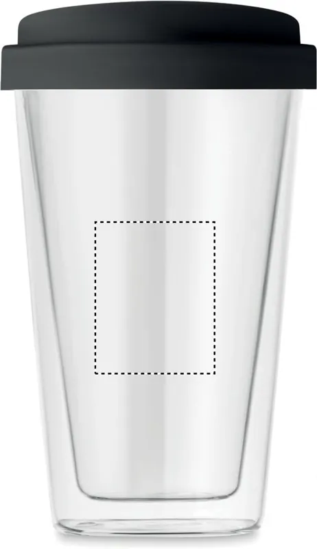 Duplafalú, boroszilikát üvegből készült pohár, szilikon fedéllel. Űrtartalom 350 ml.