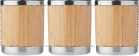 Duplafalú rozsdamentes acél pohár bambusz borítással és csúsztatható ivórésszel. Űrtartalom 250 ml. A bambusz természetes anyag, termékenként szín- és méretbeli eltérések jelentkezhetnek, ami befolyásolhatja a dekoráció végső eredményét.
