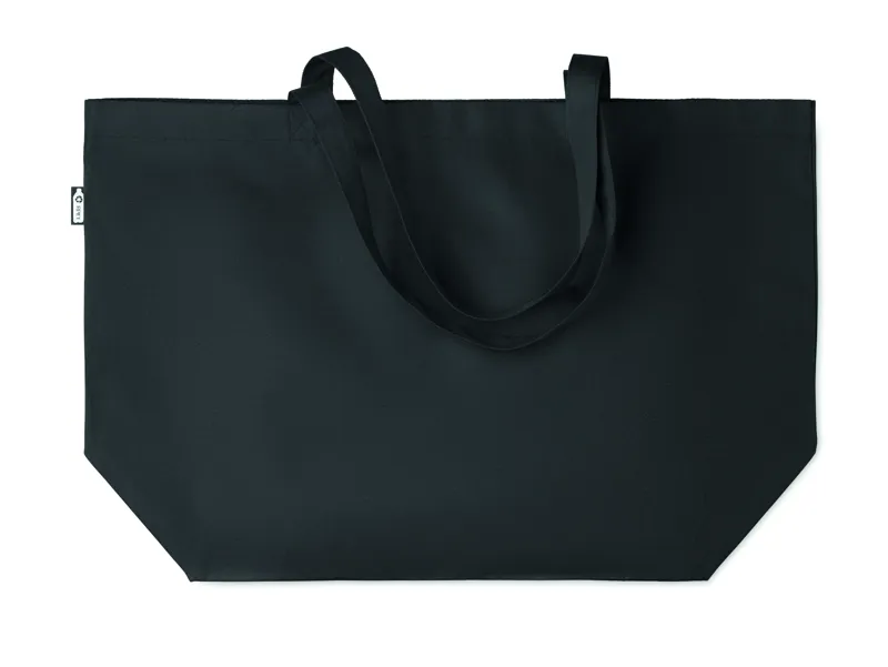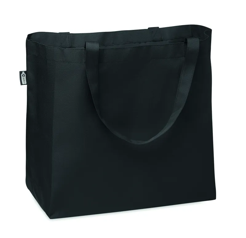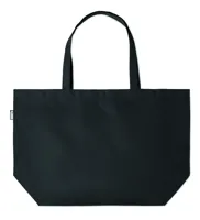 Nagy bevásárlótáska 600D RPET anyagból, hosszú fülekkel, az alján toldással.
