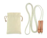 Pamut ugrókötél fa nyéllel. Pamut tasakban szállítjuk.