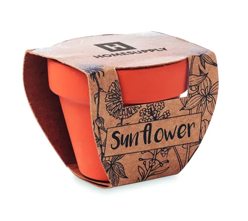 Kis terrakotta ültetőedény, napraforgó magokkal (Helianthus debilis). EU-ban gyártva. Ültetőközeg koronggal szállítjuk.