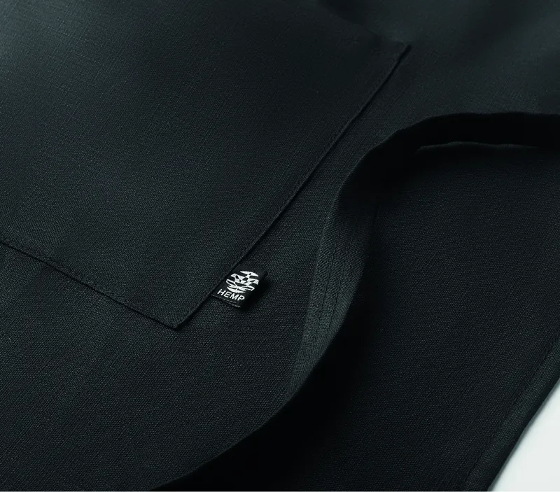 200 g vastag, 100% kenderszövet kötény, kettéosztott első nagy zsebbel.