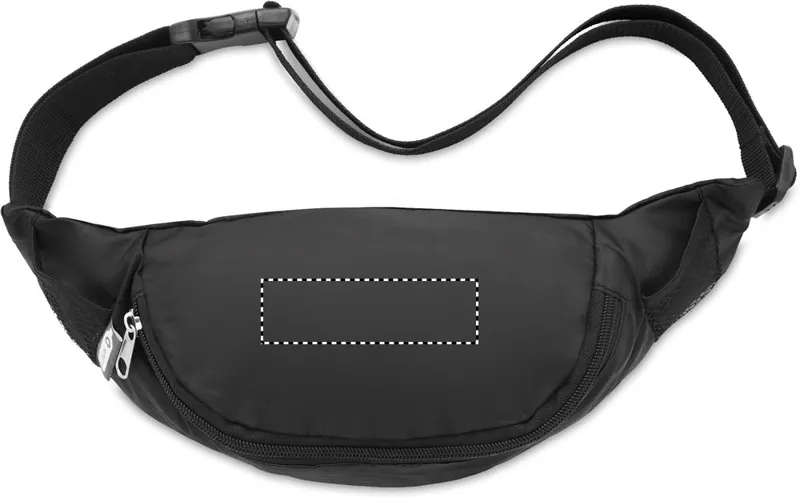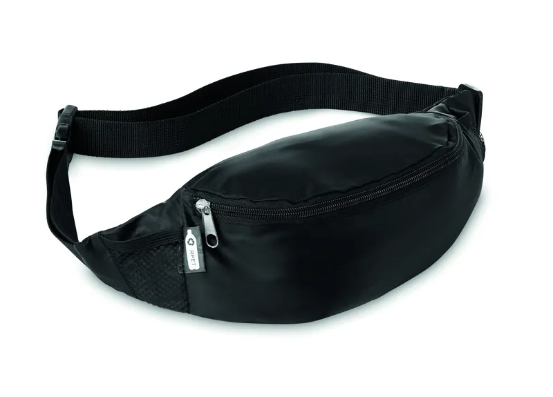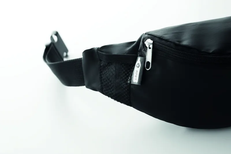 210D RPET övtáska, cipzáras fő rekesszel, állítható derékpánttal.
