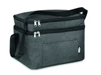 Melírozott színű, 600D RPET kétemeletes hűtőtáska, állítható vállpánttal, első zsebbel. Szigetelő anyag: 0.15mm PEVA + 3mm habszivacs.