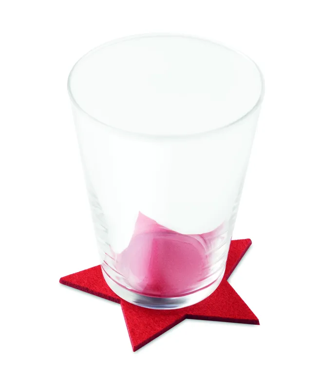 4 darab RPET filcből készült, csillag alakú poháralátétből álló készlet, kraftpapír dobozban.