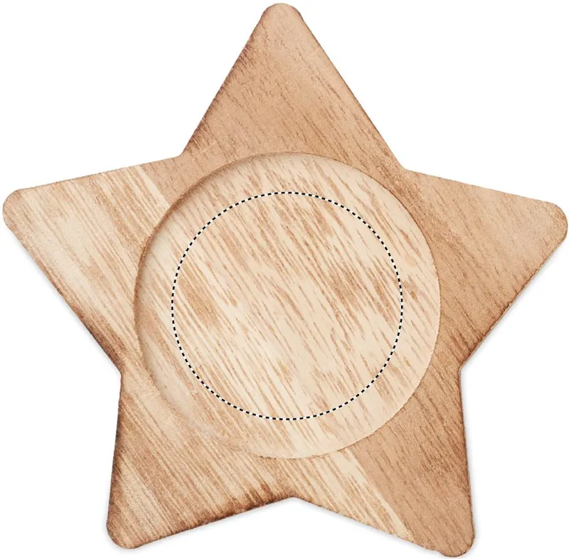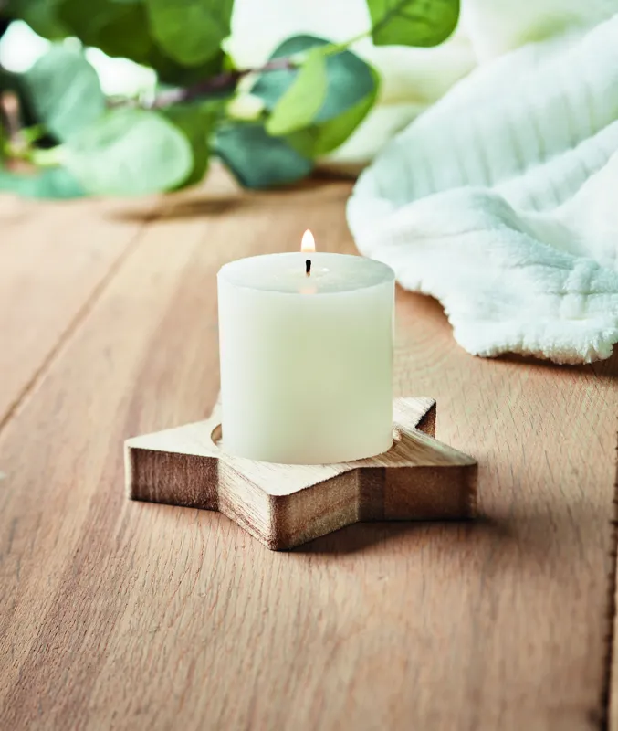 Csillag alakú fa dekoratív tartó vanília illatú gyertyával.