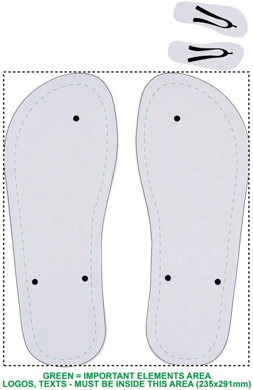 Szublimációs strandpapucs PVC pántokkal. A talp gumiból készült, a tetején poliészter bevonattal. 44-46 lábméret. A termék csak emblémázva és kompatibilis.
