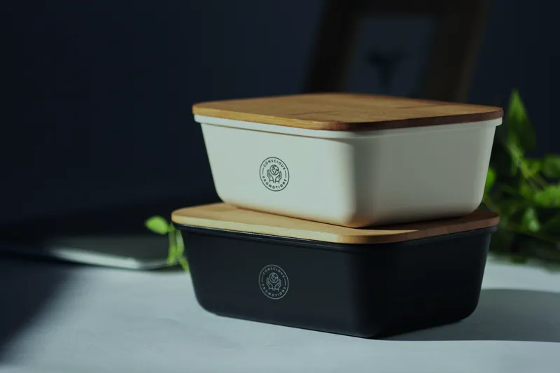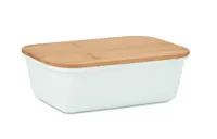 Ebéd- vagy uzsonnásdoboz PP-ből, bambuszfedéllel. A bambusz természetes anyag, színében, mintázatában és méretében esetenként eltérő lehet.
