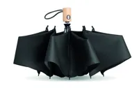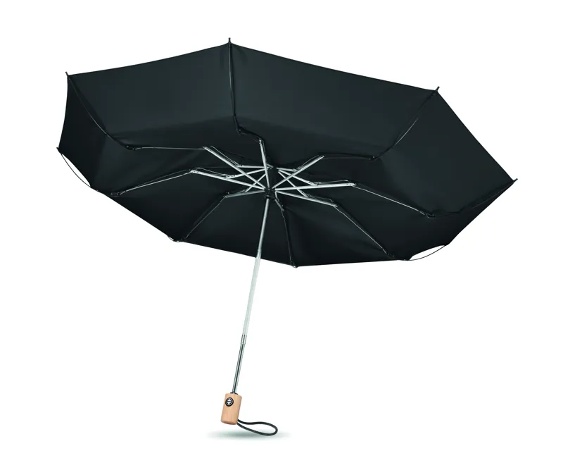 23 colos, 3 szakaszos összecsukható, automatikusan nyíló és záródó viharesernyő 190T RPET anyagból. Üvegszálas bordák. Bambusz fogantyú pamutvászon csuklópánttal. Hozzáillő RPET tokkal. A bambusz természetes anyag, színében, mintázatában és méretében esetenként eltérő lehet.