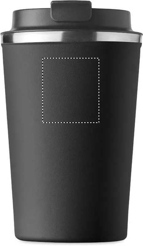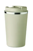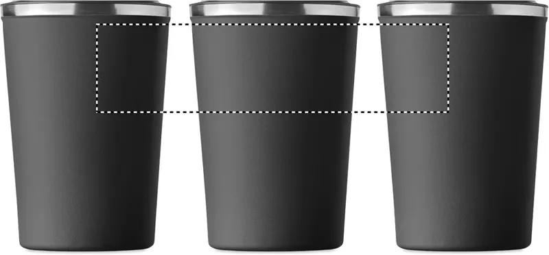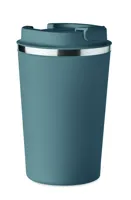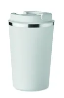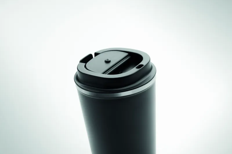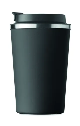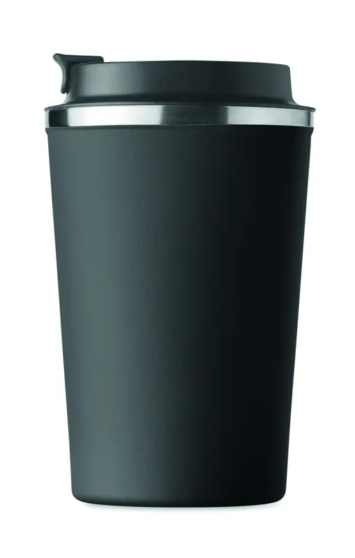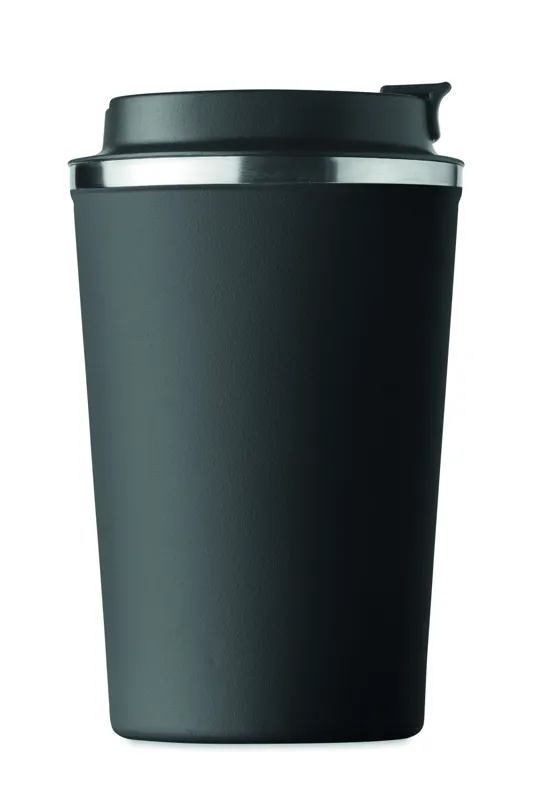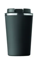 Duplafalú rozsdamentes acél pohár PP fedéllel. Űrtartalom: 350 ml. Szivárgásmentes.