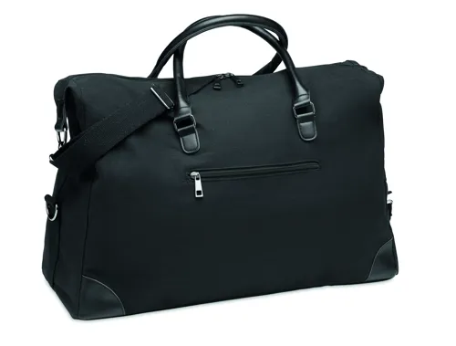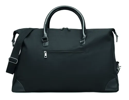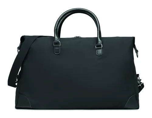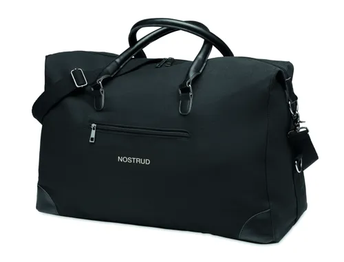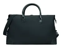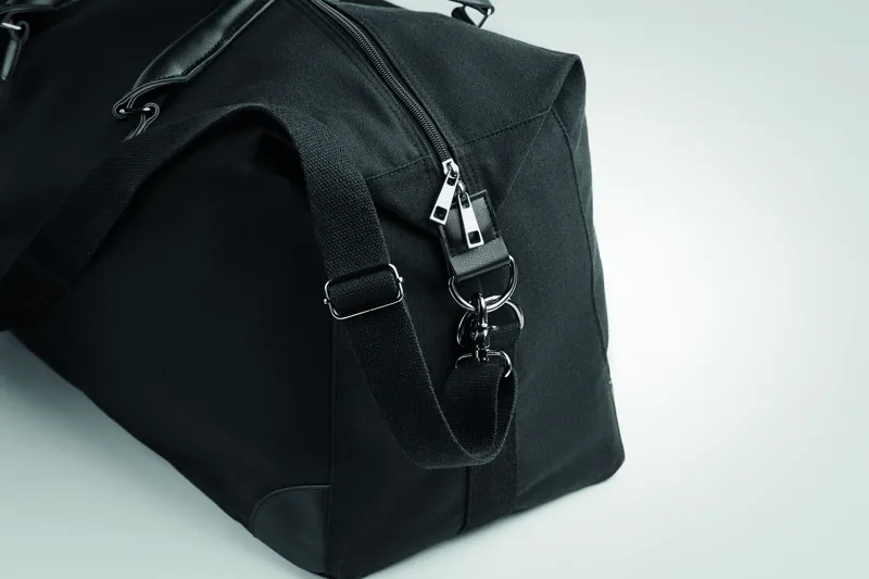 Hétvégi táska 340 g. vastag vászonból, újrahasznosított PU részletekkel. 210D RPET bélésanyaggal, erős, állítható és levehető pántokkal. Tökéletes kézipoggyász méret.