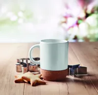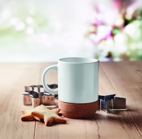 Kerámia bögre a szublimációs nyomtatást lehetővé tévő speciális bevonattal és parafa talppal. Egyesével fehér kartondobozban. Űrtartalom: 300 ml.A parafa 100%-ban természetes anyag. Szerkezeti jellege és felületi porozitása miatt az egyes tárgyak végső emblémázási eredménye eltéréseket mutathat.
