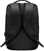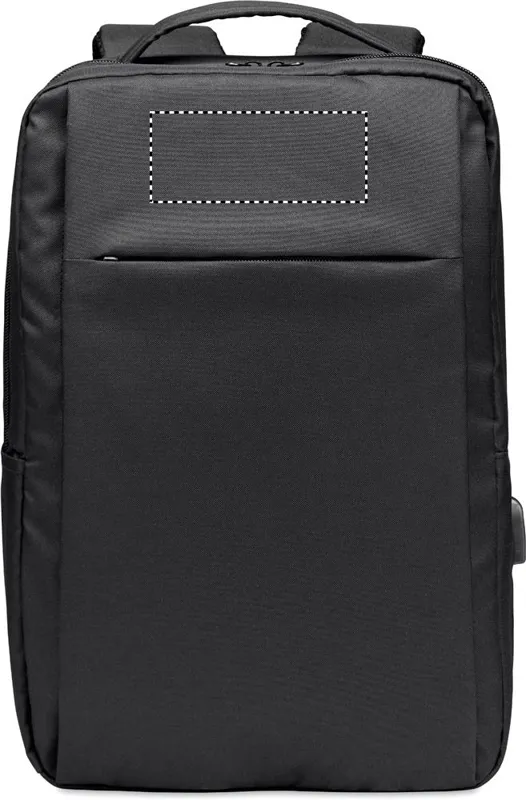 Laptop hátitáska 300D RPET poliészterből, párnázott vállpánttal. A táska 16 colos laptop számára alkalmas fő belső rekesszel, valamint USB töltőkábellel rendelkezik.