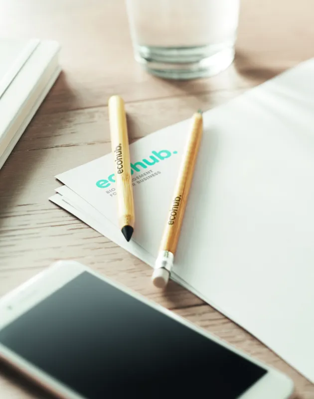 Szürkén író, ceruza hatású, hosszantartó, bambuszból készült tintamentes toll. Ez a toll grafit hegyű, így hosszabb élettartamú.