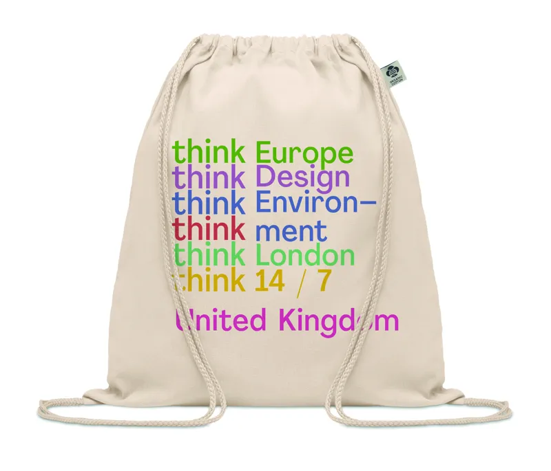 Biopamut húzózsinóros táska. 140 g vastag anyag.