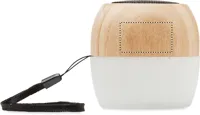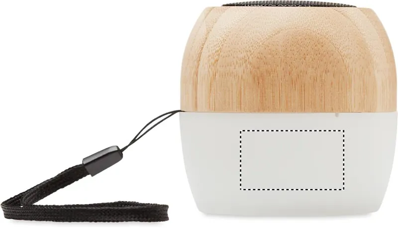5.0 vezeték nélküli hangszóró bambuszból és PP-ből, 4 színű hangulatvilágítással és hordozópánttal. 1 újratölthető 300 mAh lítium-polimer akkumulátorral. Teljesítmény: 3W, 4 Ohm. Üzemidő kb. 2 óra. A bambusz természetes anyag, színében, mintázatában és méretében esetenként eltérő lehet.