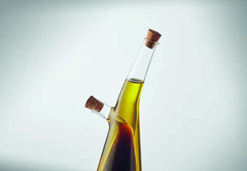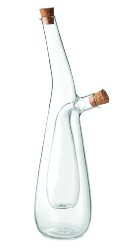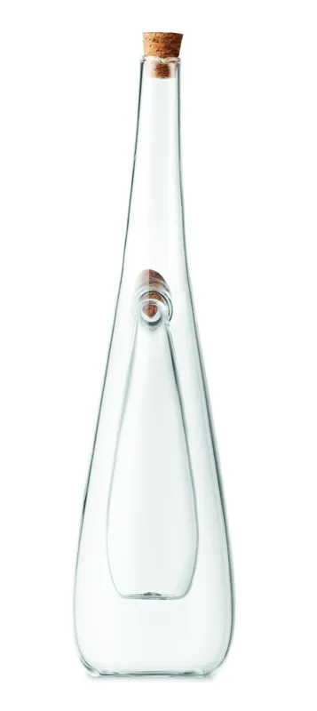 Boroszilikát üvegből készült olaj- és ecettartó palack parafa dugóval. Külső rész űrtartalma: 300 ml. Belső rész űrtartalma: 80 ml.A parafa 100%-ban természetes anyag. Szerkezeti jellege és felületi porozitása miatt az egyes tárgyak végső emblémázási eredménye eltéréseket mutathat.