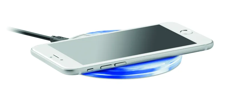 Vezeték nélküli töltő. Csatlakoztassa a számítógéphez, tegye rá az okostelefont és hagyja, hogy feltöltődjön. Kék fény jelzi a töltést. Teljesítmény: DC9V/1.1A (15W).