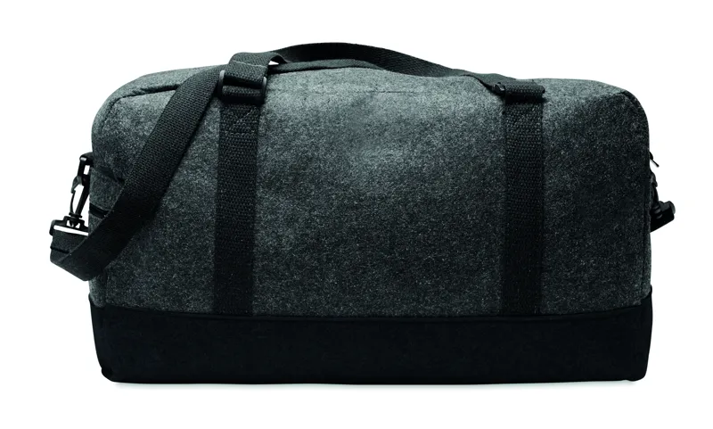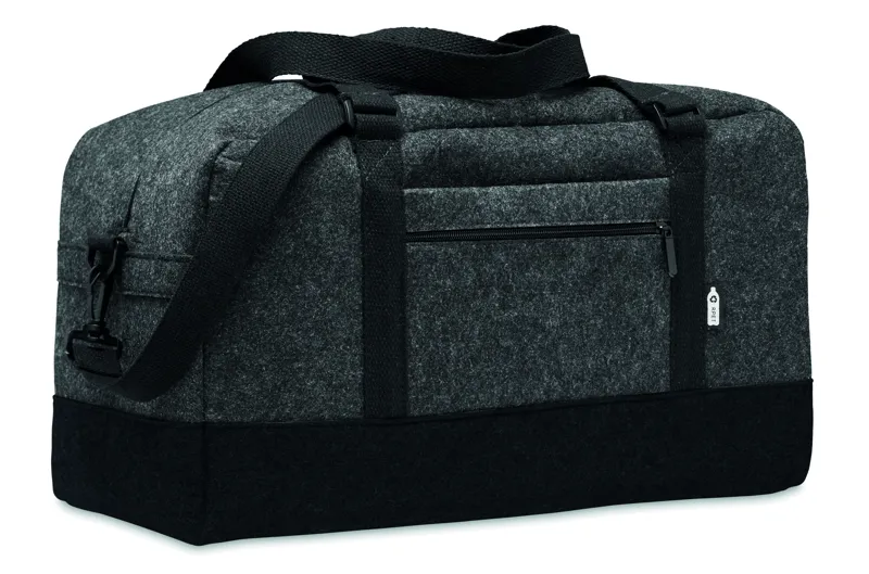 RPET filc sport/fitnesz vagy hétvégi táska cipzáras elülső zsebbel, vászon hordfülekkel és levehető, állítható vállpánttal.