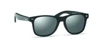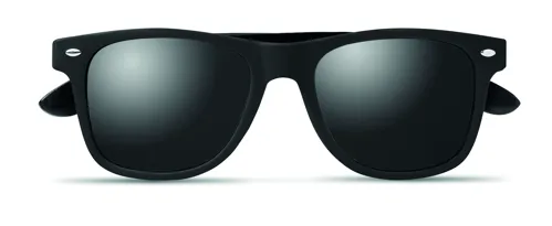Napszemüveg fekete bevonatos bambusz szárral és tükrös lencsével. UV400-as védelem. A bambusz természetes anyag, színében, mintázatában és méretében esetenként eltérő lehet.